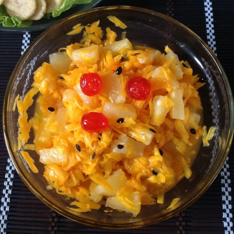 - Drain 1 can pineapple pieces and add them to the butternut.