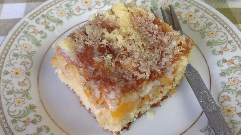8. Syrup: In a saucepan, combine 1 cup milk, 4 tbsp margarine or butter, 1/2 cup shredded coconut, and 1/2 cup sugar.