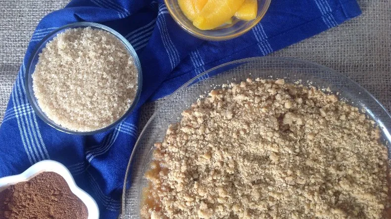 - Crumble Topping: In a mixing bowl, combine 1 cup flour, a pinch of salt, and 1 tsp cinnamon. Mix well.