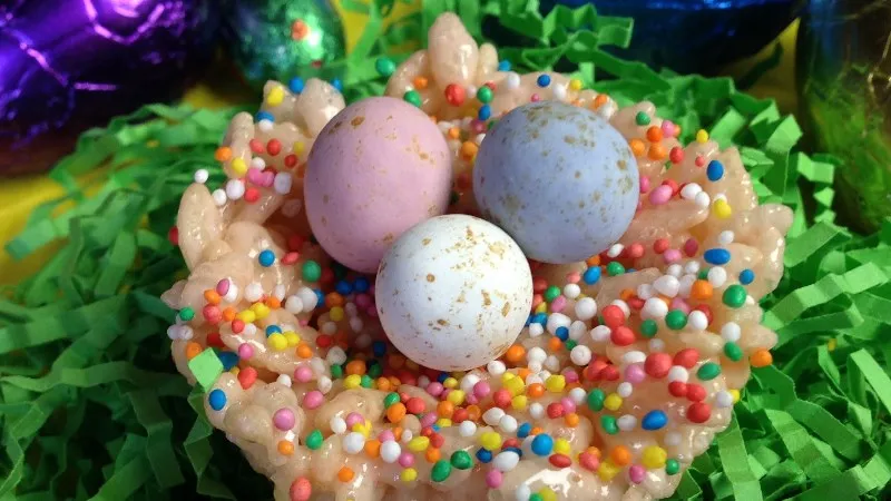 - Work quickly – The marshmallow mixture sets fast, so shape the nests while it’s still warm and pliable.